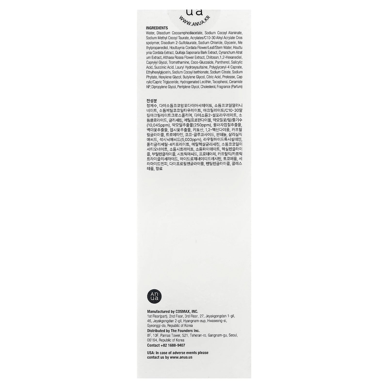 Eau, cocoamphodiacétate disodique, sodium cocoyl alaninate, sodium methyl cocoyl taurate, polymère de propénoate d’alkyle en C10-C30, d’acide propénoïque, d’acide buténoïque et/ou de propénoates d’alkyle, produit avec de l’éther propénylique de saccharose ou du 2,2-dihydroxyméthyl-1,3-propanediol de propényle, disodium 2-sulfolaurate, chlorure de sodium, glycérol, méthylpropanediol, eau de fleur/feuille/tige de Houttuynia cordata, extrait de poivrier de Chine, extrait d’écorce de bois de Panama, extrait de Cynanchum atratum, extrait de fleur de rose trémière, chitosane, 1,2-hexanediol, caprylyl glycol, trométamol, coco-glucoside, panthénol, acide salicylique, acide succinique, lauryl hydroxysultaine, dérivé de glycérol et d’acide caprique, 3-(2-éthylhexyloxy)-1,2-propanediol, sodium cocoyl isethionate, citrate de sodium, phytate de sodium, hexylèneglycol, butylène glycol, acide citrique, protéase, ester triple de glycérol et des acides caprylique et caprique, lécithine hydrogénée, tocophérol, céramide NP, dipropylène glycol, pentylène glycol, cholestérol, parfum.