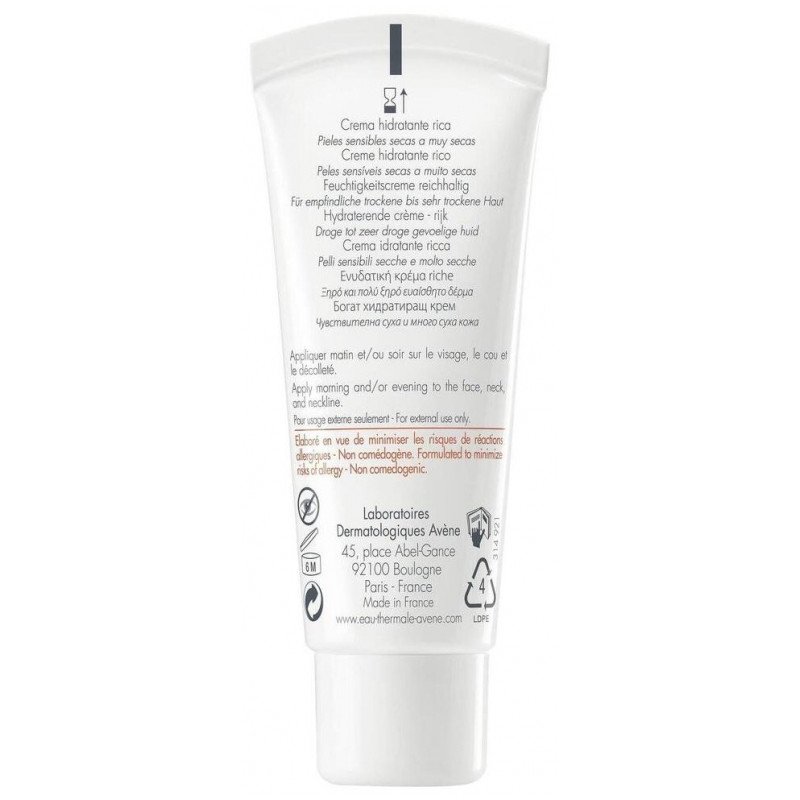 Avène Hydrance Riche Crème Hydratante 40 ml à la texture onctueuse et nutritive est recommandée pour hydrater les peaux sensibles sèches à très sèches.