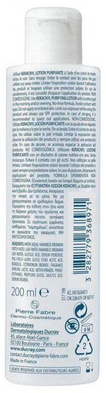 Ducray Keracnyl Lotion Purifiante 200 ml assainit, matifie et resserre les pores des peaux grasses à imperfections.