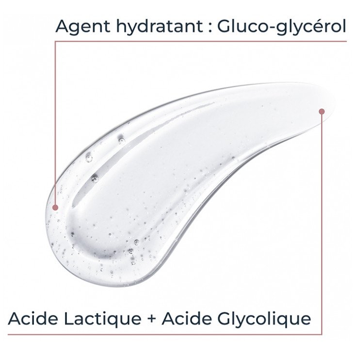 Sa formule enrichie en gluco-glycérol assure une hydratation optimale, tandis que les 2% d’AHA (Acide Lactique et Acide Glycolique) favorisent le renouvellement cellulaire et l’exfoliation.