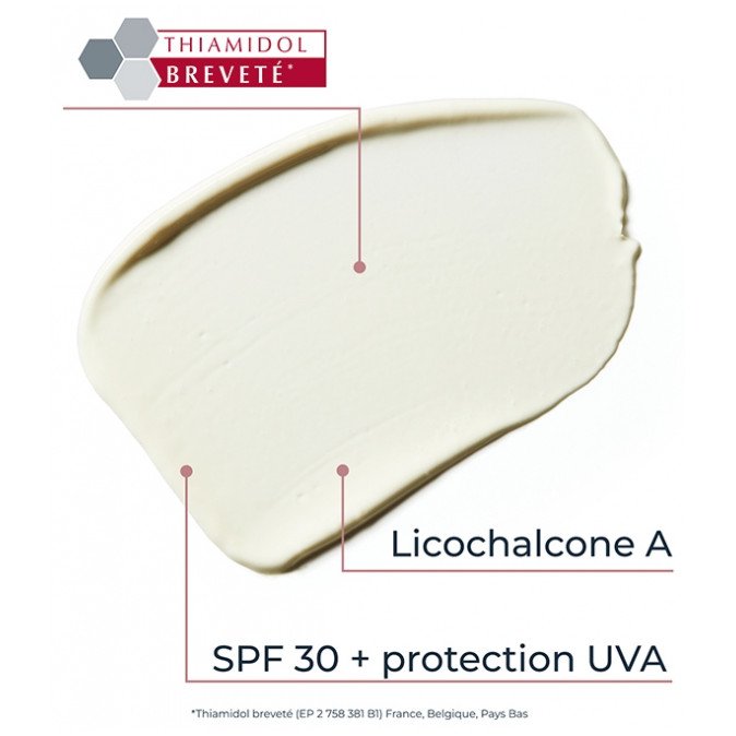 Aqua, Homosalate, Alcohol Denat, Butyl Methoxydibenzoylmethane, Ethylhexyl Salicylate, Ethylhexyl Triazone, Bis-Ethylhexyloxyphenol Methoxyphenyl Triazine, Butylene Glycol Dicaprylate/Dicaprate, Tapioca Starch, Distarch Phosphate, C12-15 Alkyl Benzoate, Phenylbenzimidazole Sulfonic Acid, Isobutylamido Thiazolyl Resorcinol, Glycyrrhiza Inflata Root Extract, Tocopherol, Glucosylrutin, Isoquercitrin, Glycerin, Cetyl Alcohol, Stearyl Alcohol, Sodium Chloride, Xanthan Gum, Carbomer, Sodium Hydroxide, Glyceryl Stearate, Sodium Stearoyl Glutamate, Dimethicone, Phenoxyethanol, Trisodium EDTA, Parfum.