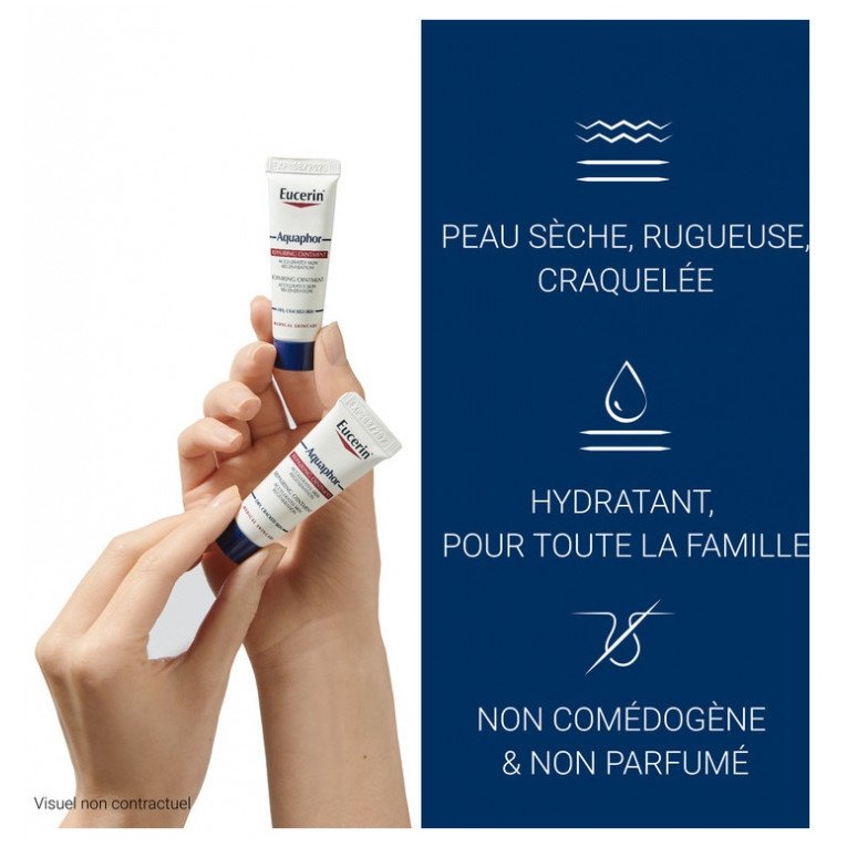 Eucerin Aquaphor Baume Réparateur Cutané Lot de 2 x 10 ml est un soin destiné aux peaux très sèches, irritées ou gercées, qui accélère le processus de régénération cutanée.