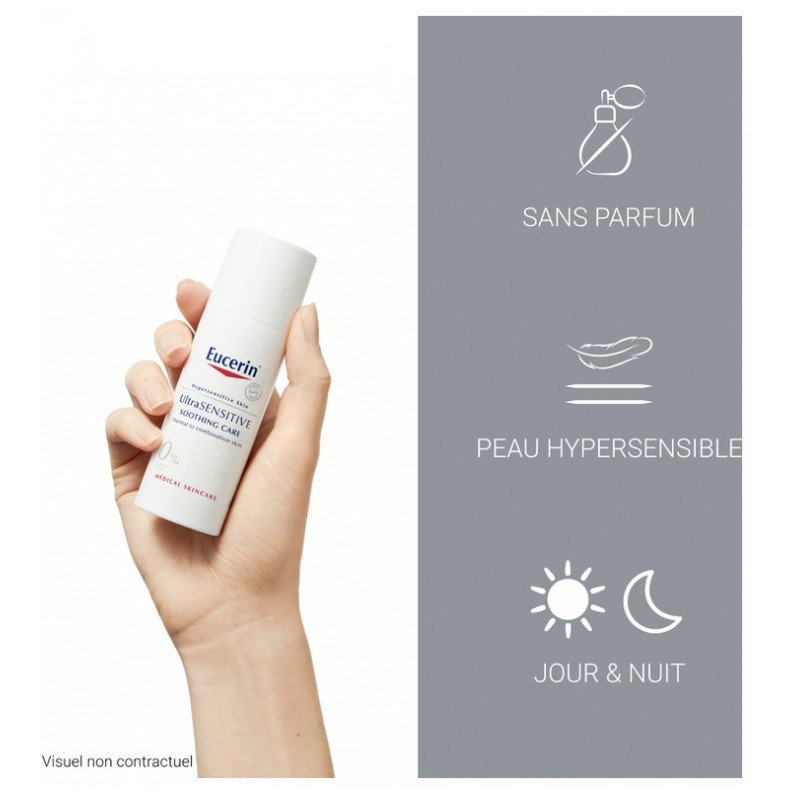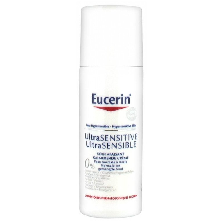 Eucerin Ultra Sensible Soin Apaisant Peau Normale à Mixte 50 ml est recommandé pour les peaux déshydratées normales à mixtes car il apporte un confort cutané immédiat, soulage les irritations et hydrate la peau immédiatement et durablement.