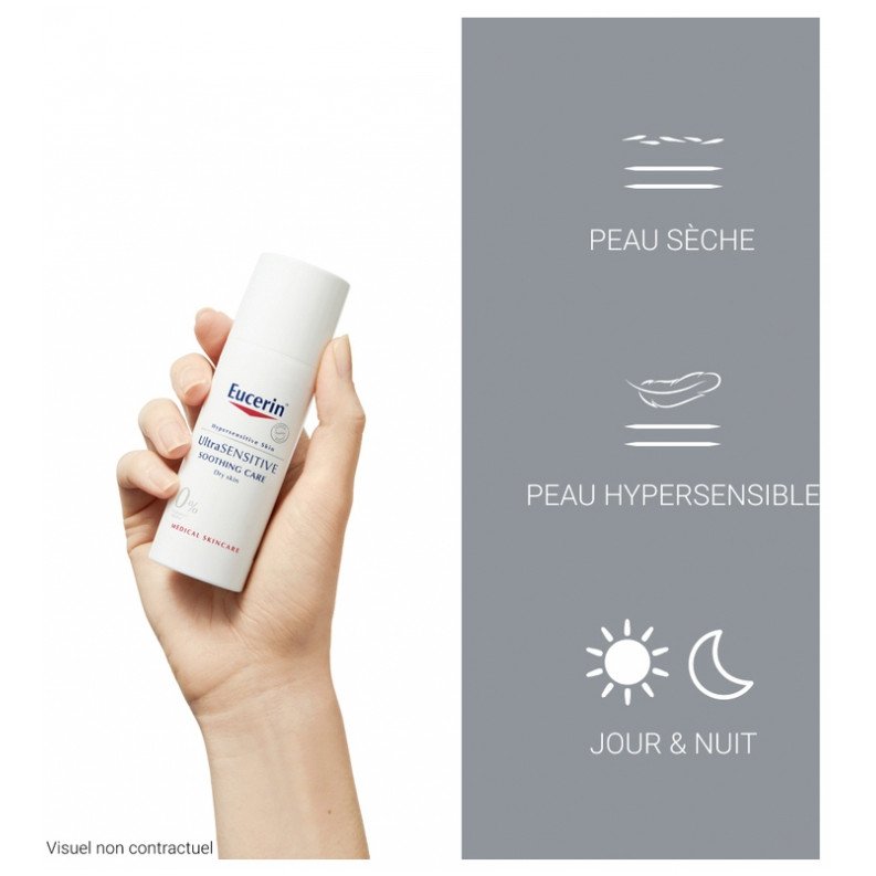 Eucerin Ultra Sensible Soin Apaisant Peau Sèche 50 ml est recommandé pour les peaux déshydratées sèches car il apporte un confort cutané immédiat, soulage les irritations et hydrate la peau de manière optimale.