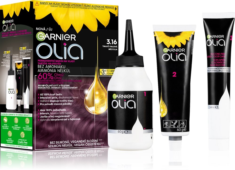Une coloration qui pénètre en profondeur dans les fibres capillaires et garantit ainsi un résultat inhabituellement intense. La coloration permanente pour cheveux Garnier Olia Big Kit utilise une technologie à base huileuse : elle contient 60 % d’huile, sans aucun ammoniac ou silicone. En plus de nourrir et d’hydrater vos cheveux, ce soin les rend également rayonnants, et il en améliore la qualité pour qu’ils deviennent à la fois doux et souples. L’emballage comprend la coloration en elle-même, mais aussi un oxydant, un soin après-lavage et un applicateur qui simplifie l’application.