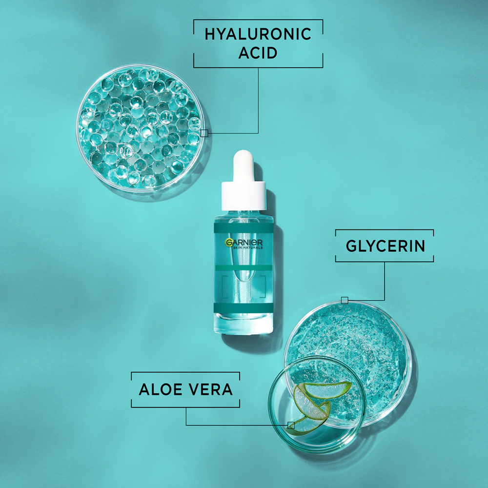 Retrouvez toute la souplesse, la fermeté et la douceur d’une peau pleine de jeunesse en choisissant le sérum hydratant à l’acide hyaluronique Garnier Skin Naturals Hyaluronic Aloe Replumping Serum. Hormis les premiers changements constatés dès la première application, vous remarquerez après un mois d’utilisation régulière que votre visage a gagné en hydratation, en fermeté, mais aussi en luminosité. La présence de l’extrait d’aloe vera vous garantira également régénération et apaisement général.