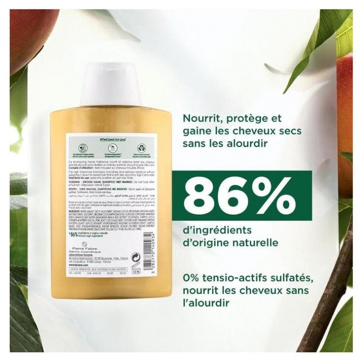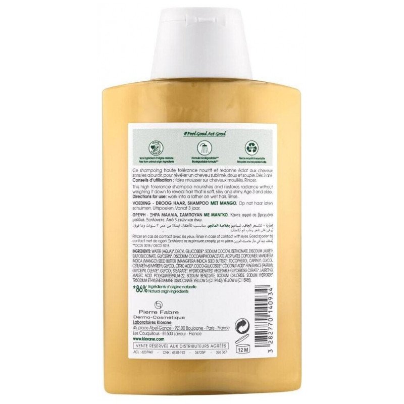 Klorane Shampoing à la Mangue 200 ml est un shampoing haute tolérance qui nourrit et redonne éclat aux cheveux sans les alourdir, pour révéler un cheveu sublimé, doux et souple. Dès 3 ans.