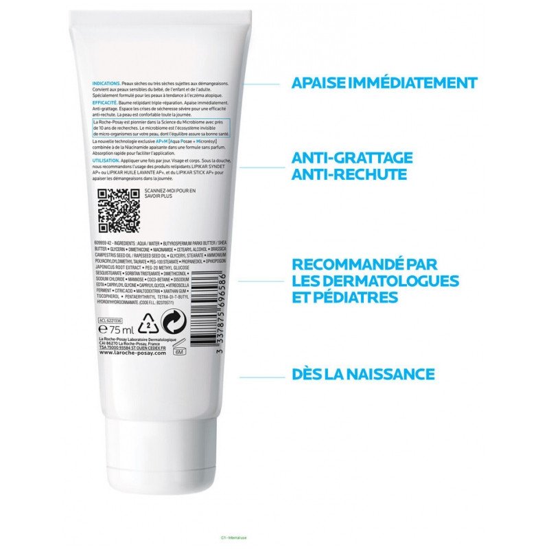 La Roche-Posay Lipikar AP+ M Baume Relipidant 75 ml est un soin à triple réparation : anti-grattage, anti-rechute et apaisement immédiat pour les peaux à tendance atopique. Indiqué pour toute la famille (bébés, enfants, adultes), il permet d’espacer les crises de sécheresse sévère pour une efficacité anti-rechute. La peau est confortable pour la journée. Ce baume est d’absorption rapide pour faciliter l’application.