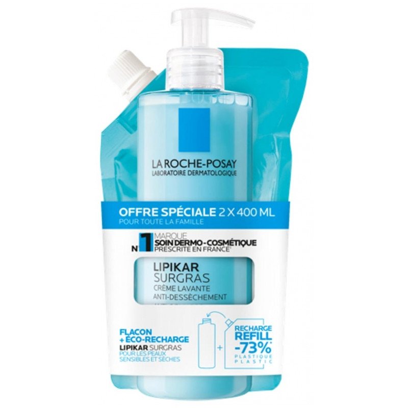 Ce produit recharge La Roche-Posay Lipikar Surgras Crème Lavante Anti-Dessèchement 400 ml.