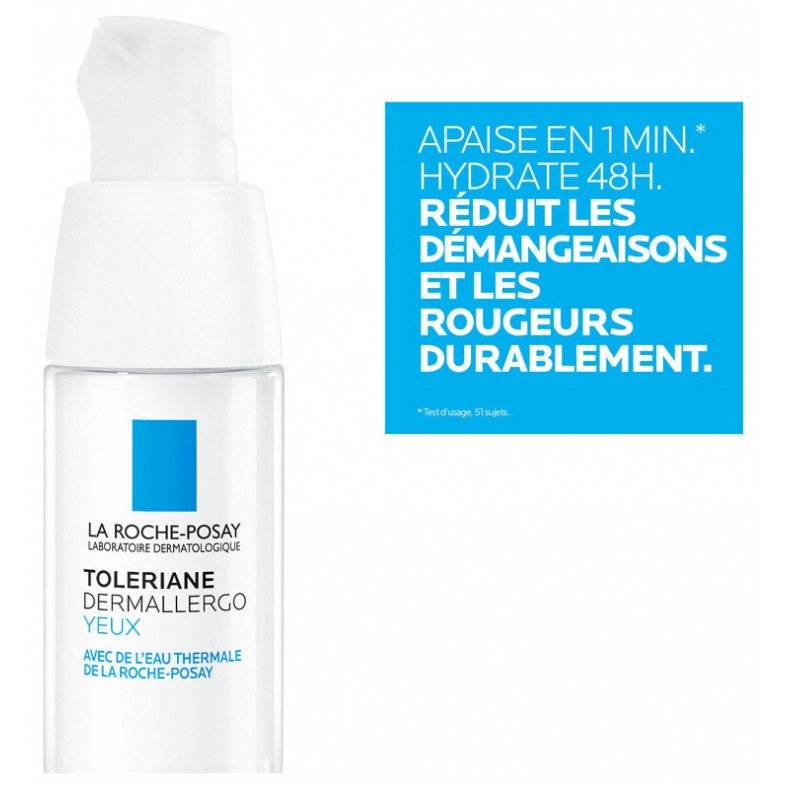La Roche-Posay Tolériane Dermallergo Yeux 20 ml est un soin contour des yeux réparateur apaisant quotidien qui hydrate, apaise les sensations de démangeaison et réduit les rougeurs instantanément. Il répare et protège la barrière cutanée.