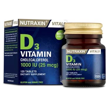 Vitamine D3 sous forme de cholecalciferol. Nutraxin vitaminde D3 contient 1000UI de vitamine D3 par comprimé.