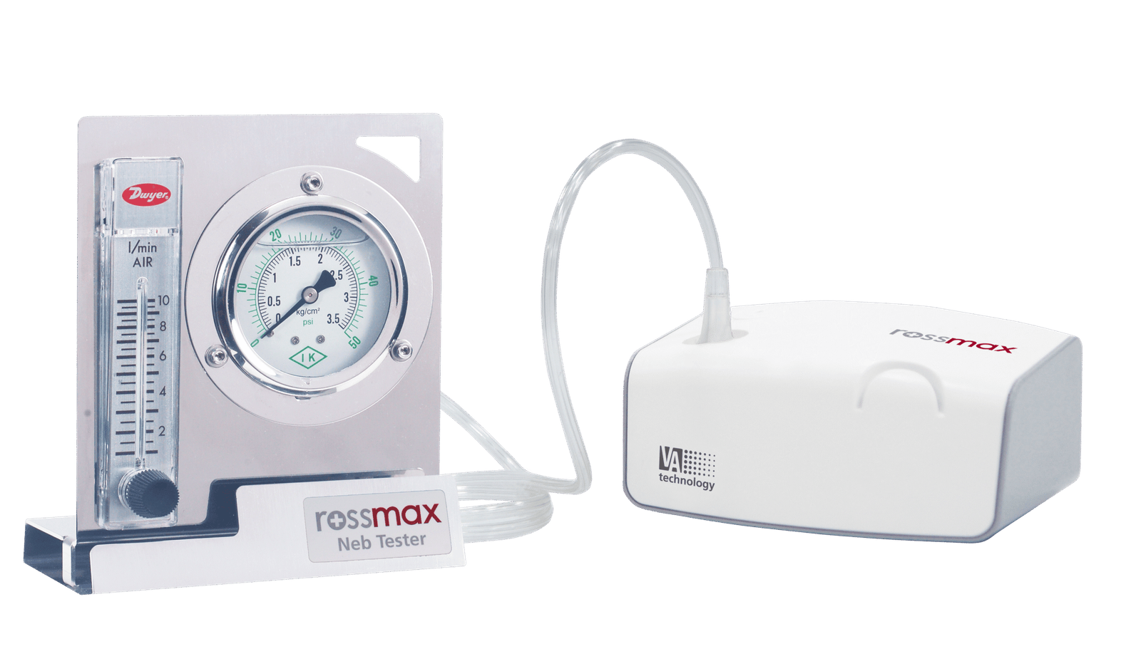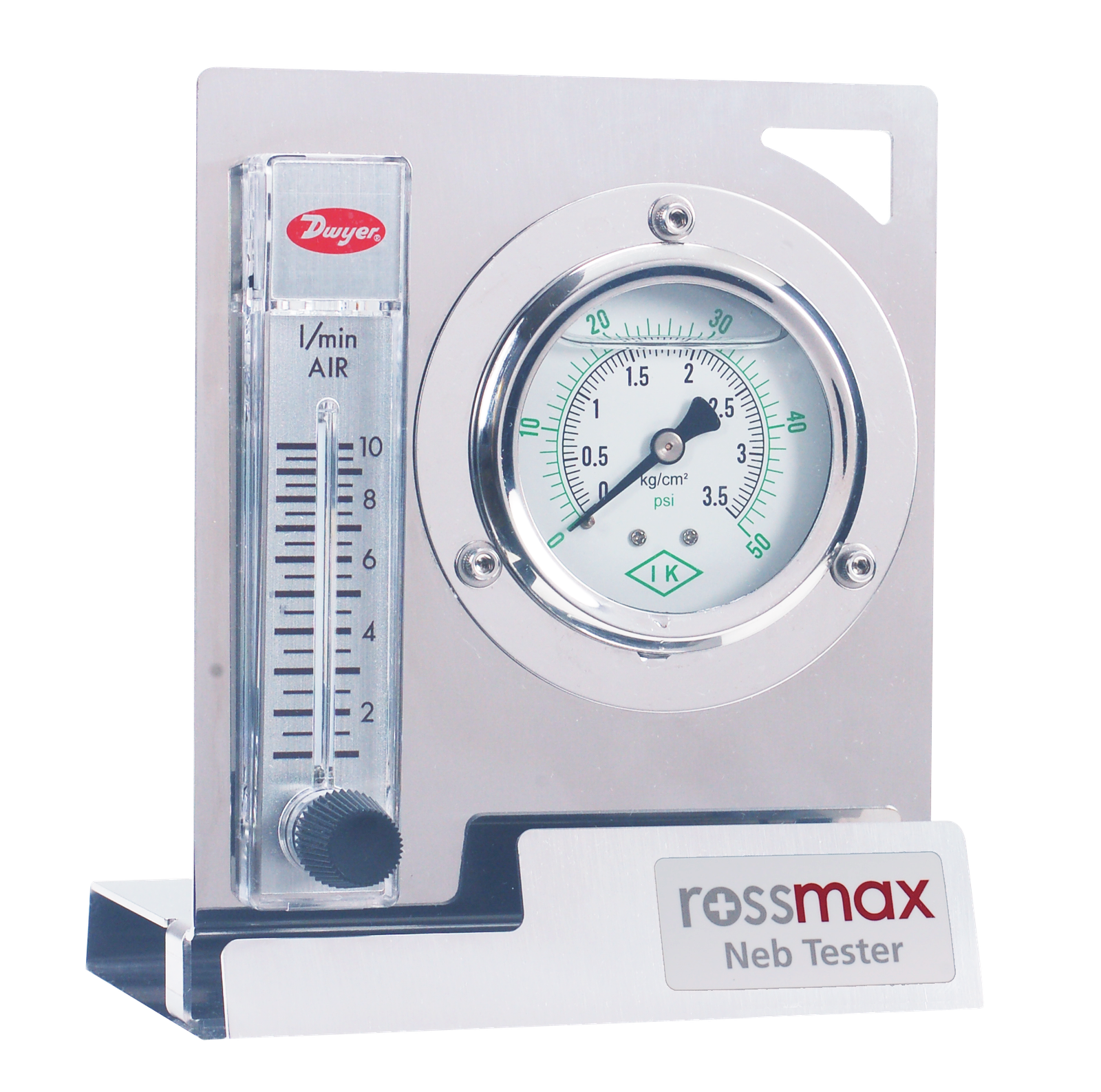 Le Rossmax Neb Tester est un appareil portable et facile à utiliser qui permet à l’utilisateur de vérifier rapidement la performance de la pompe d’un nébuliseur de compresseur.