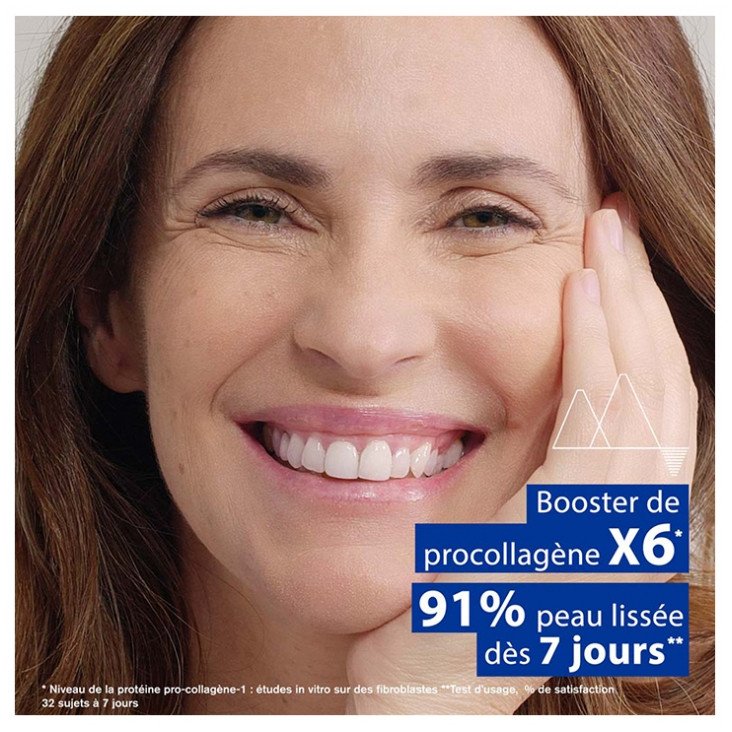 - Correction anti-âge globale : Sa haute concentration en actifs anti-âge permet de diminuer l’apparence des ridules et rides, de lutter contre le relâchement cutané et la perte de densité :