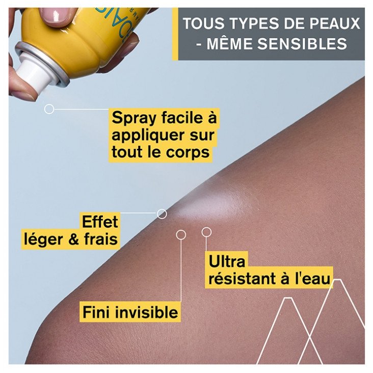 Sa texture ultra-légère et invisible garantit un fini sec et non-collant. Son système de diffusion permet une application facile même sur peau mouillée.