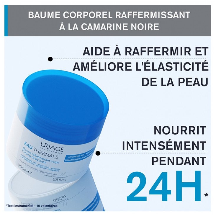 Sa formule associe l’eau thermale d’Uriage reconnue pour ses propriétés apaisantes et anti-irritantes à l’acide hyaluronique, au beurre de karité, à la camarine noire, pour améliorer la fermeté et l’élasticité de la peau.