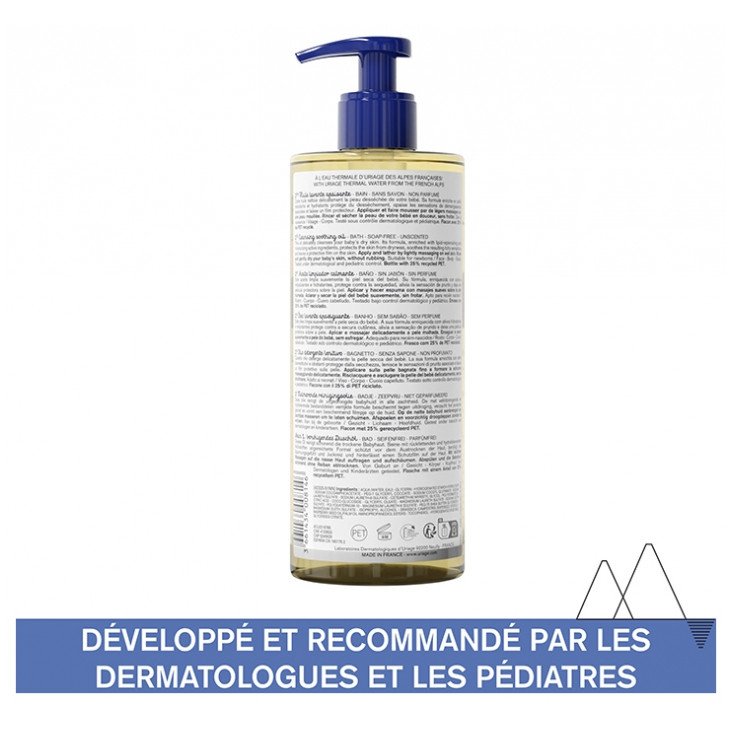 Uriage Bébé 1ère Huile Lavante 500 ml est une huile lavante nourrissante sans savon qui nettoie en douceur la peau délicate de bébé. Sa formule biodégradable au complexe naturel (Eau Thermale d’Uriage + Edelweiss bio), associée à des agents doux surgraissants, protège la peau des effets desséchants de l’eau en laissant un film protecteur.