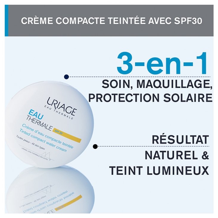 Uriage Crème d’Eau Compacte Teintée SPF30 10 g à la poudre d’Eau Thermale va plonger votre peau dans un véritable Bain Thermal.