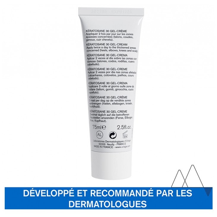 Uriage Kératosane 30 Gel-Crème 75 ml est une crème qui associe des actifs kératolytiques, apaisants et hydratants pour éliminer les squames et lutter efficacement contre les callosités et les épaississements cutanés localisées. Il pénètre facilement sans laisser de film gras.