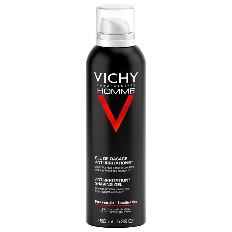 Vichy Homme Gel de Rasage Anti-Irritations 150 ml est un gel de rasage destiné aux hommes ayant une peau sensible ou à problèmes (poils incarnés, boutons liés au rasage …) et présentant des rougeurs ou irritations post-rasage.